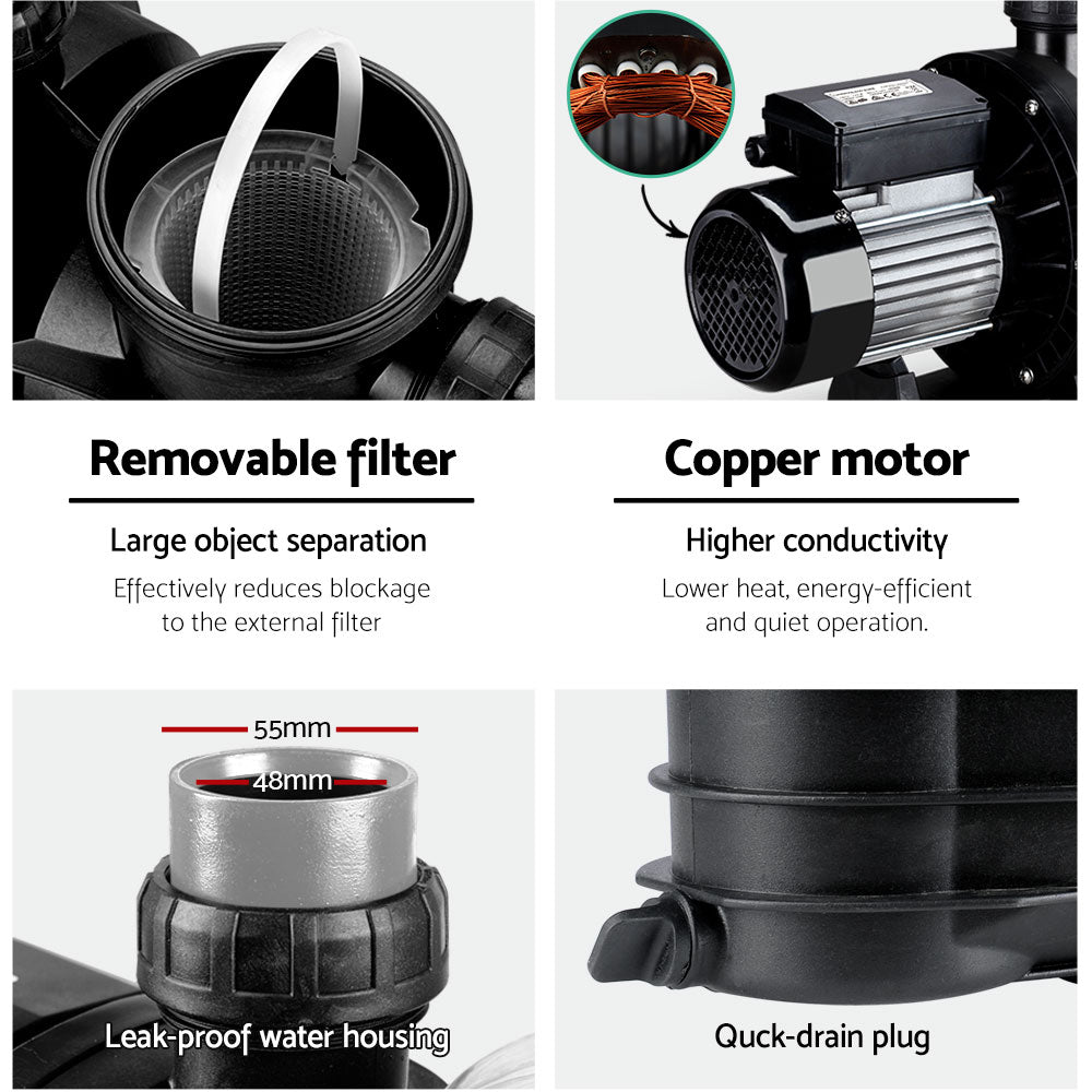 A great value purchase with a full 12 months warranty, the Giantz Pool Pump is a must for anyone who values a crystal-clear pool at all times. Get yours today.