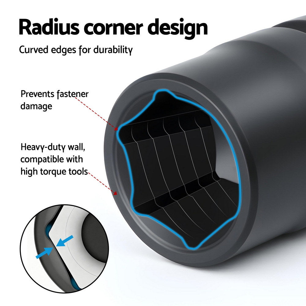 The Giantz 30-Piece 1/2" Drive Socket Set is built for both professionals and DIY users. Made from heat-treated chrome vanadium steel, these sockets deliver superior strength, hardness, and durability.