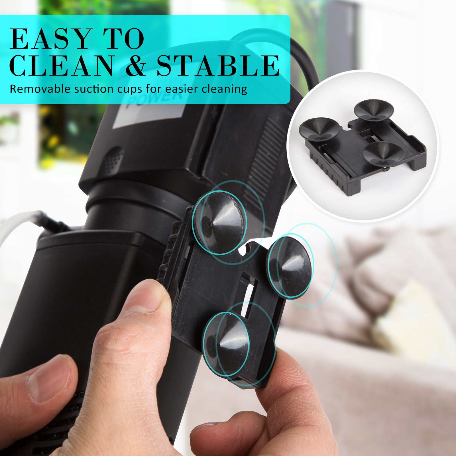 The outer shell is made of high-quality ABS which is strong and durable. It is waterproof and it is very well insulated. There are suction cups so you can easily attach the filter inside your tank horizontally or vertically. It comes with an air tube to help increase the oxygen levels of your aquarium. This also control water and oxygen circulation so it helps even out these two essential elements in order to create a healthy environment for your fish, plants and other aquatic pet you may have. The axle and motor is made of high-quality stainless steel and ceramic so it is acid and corrosion proof. This makes it suitable for both fresh and salt water!